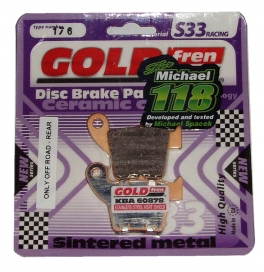 • S33 RACING высокотехнологичные тормозные колодки компании GOLD FREN разработанные совместно с спортсменами уровня мирового мотокросса. Первоклассные тормозные колодки для мотоциклов мотокросс\эндуро класса MX,  тормозные колодки профессиональной  серии S33 обеспечивают максимальный эффект торможения при больших нагрузках в тяжелых условиях мотокросса. Отличные свойства тепло-передачи достигаются высокотехнологичному феродо и медной основое, не теряя своих характеристик при длительном сроке эксплуатации!!!