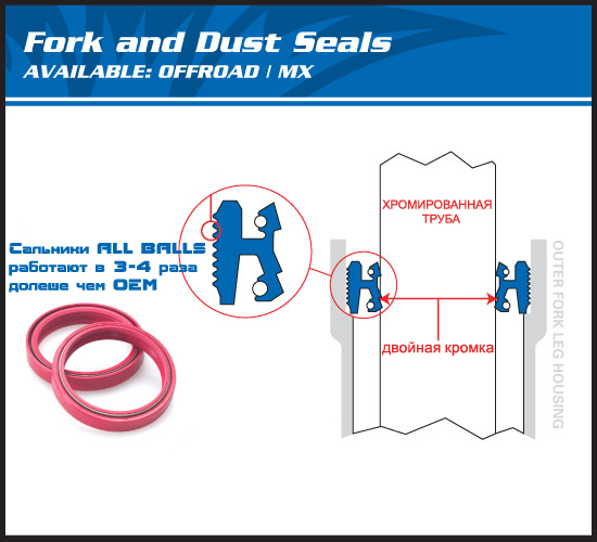 • Ремкомплект сальников передней вилки ALL BALLS.